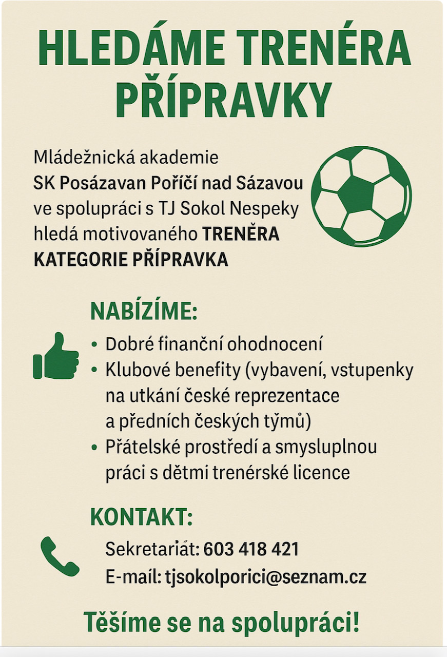 „Mládežnický fotbalový klub Sokola Nespeky a SK Posázavan Poříčí nad Sázavou je pro mě jako rodiče skvělou volbou. Klub se nezaměřuje pouze na sportovní výkonnost, ale také na výchovu mladých hráčů. Díky tomu jsou zde vytvářeny silné a zodpovědné osobnosti, které jsou připravené na jakýkoliv výzvu. Velký dík patří také skvělému organizačnímu týmu, který se stará o plynulý chod klubu“